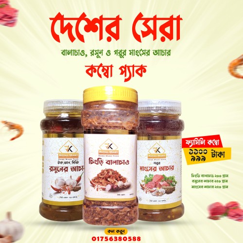 চিংড়ি বালাচাও 200 গ্রাম ও গরুর মাংসের আচার 250 গ্রাম ও রসুনের আচার 250 গ্রামের কম্বো